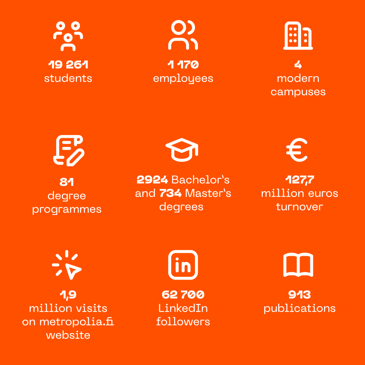 In the autumn semester 2025, Metropolia had 19,261 enrolled students. There were 12,082 full-time degree students and 4,640 students enrolled in blended degree programmes. A total of 2,502 students were completing a Master’s degree, and 37 students were enrolled in specialisation studies.