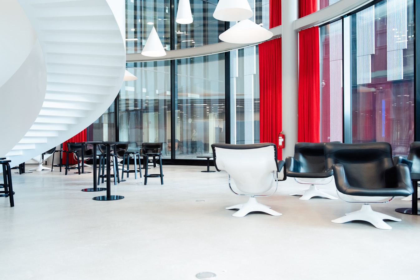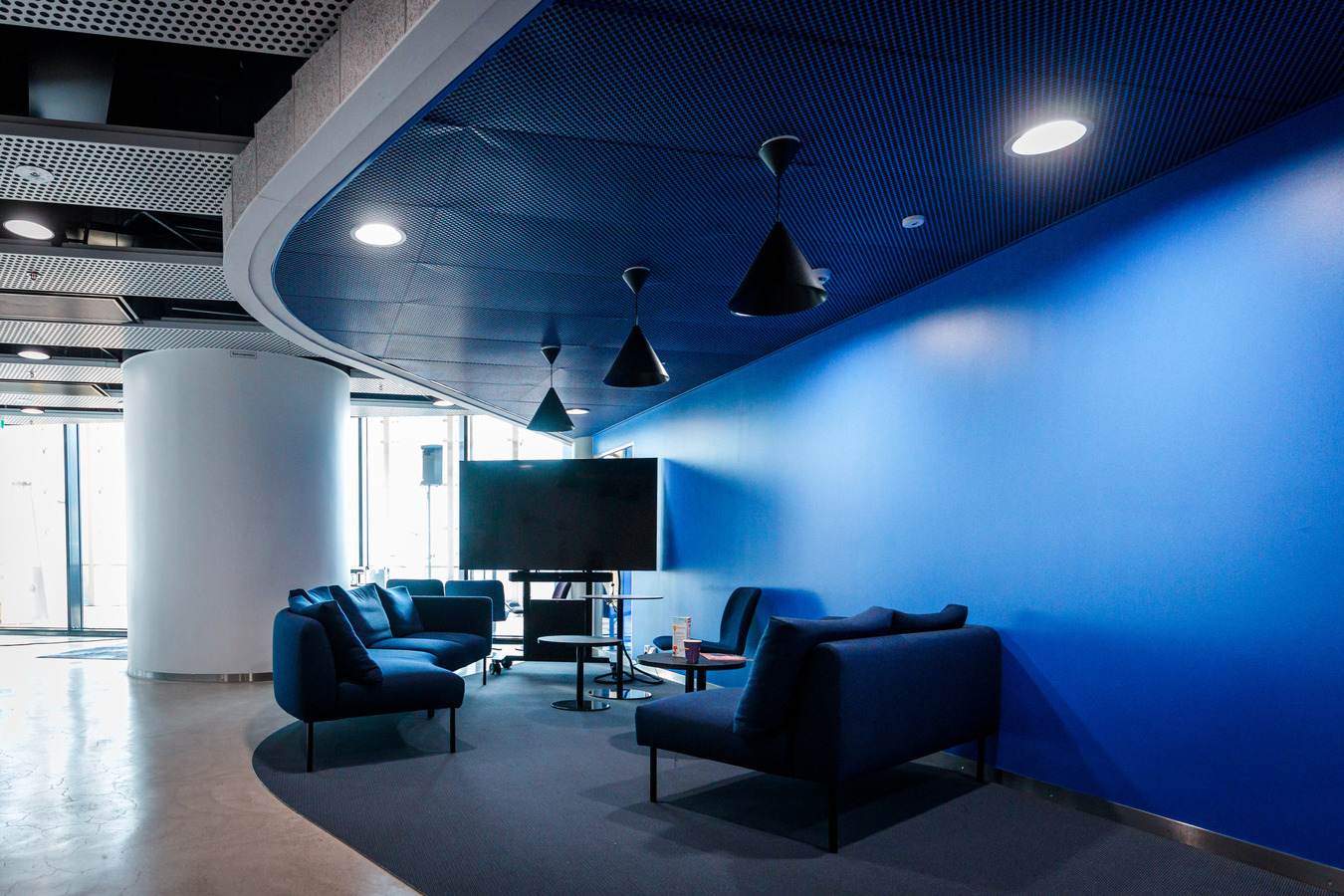 Käytäviltä löytyy erilaisia nurkkauksia lepo- tai työskentelyhetkiin.