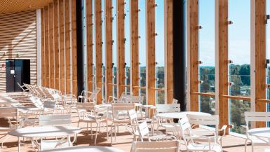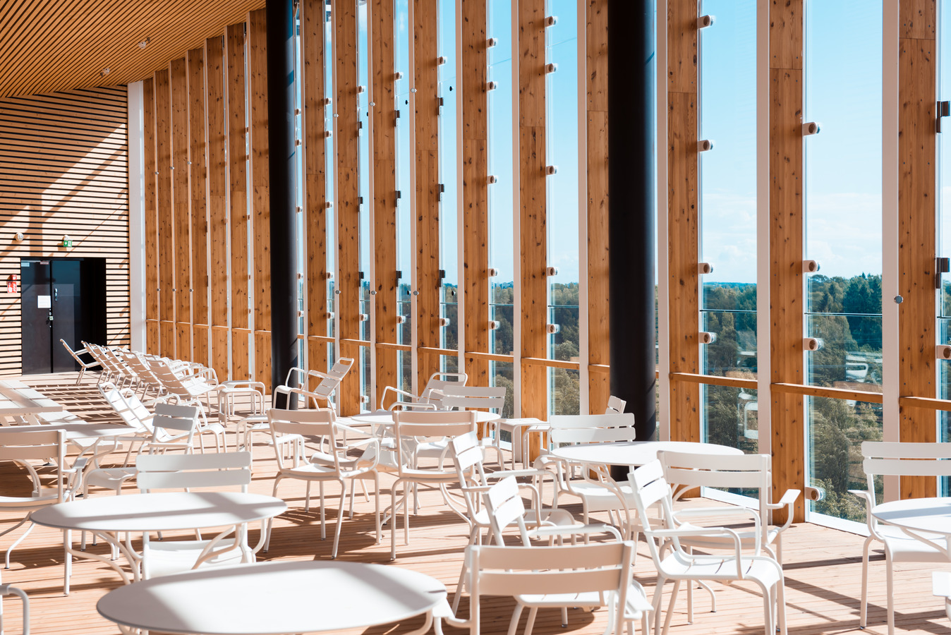Kuudennen kerroksen aurinkoterassi on käytössä lämpiminä vuodenaikoina.